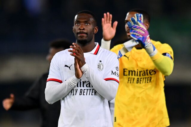 VERONA, ITALIA – 20 DICEMBRE: Fikayo Tomori dell’AC Milan applaude i suoi tifosi durante la partita di Serie A tra Verona e AC Milan allo Stadio Marcantonio Bentegodi il 20 dicembre 2024 a Verona, Italia. (Foto di Alessandro Sabattini/Getty Images)