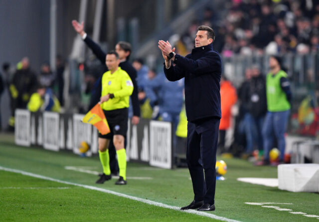 TORINO, ITALIA – 16 FEBBRAIO: Thiago Motta, allenatore della Juventus, applaude durante la partita di Serie A tra Juventus e FC Internazionale all’Allianz Stadium il 16 febbraio 2025 a Torino, Italia. (Foto di Valerio Pennicino/Getty Images)