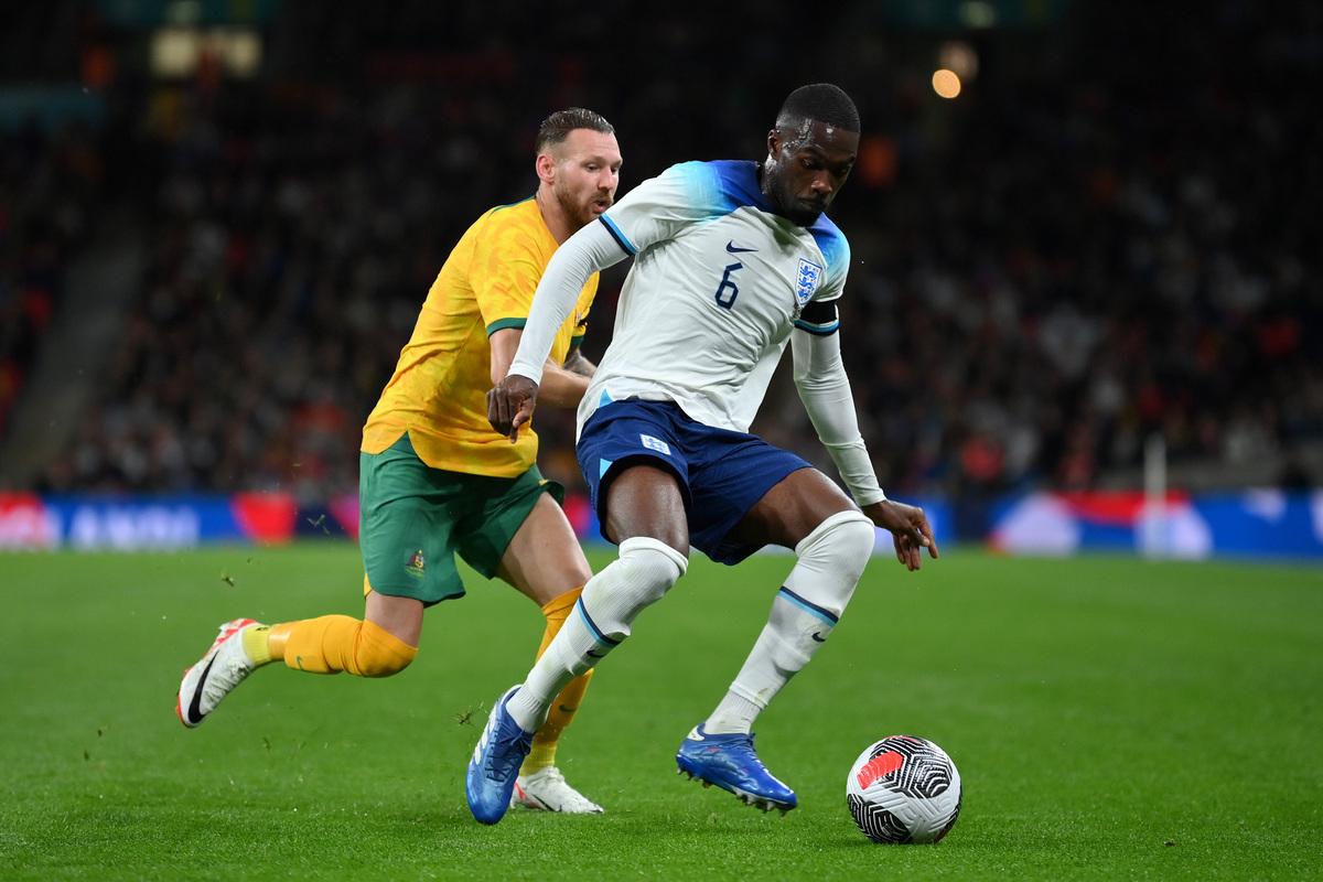 LONDRA, INGHILTERRA – 13 OTTOBRE: Fikayo Tomori dell’Inghilterra viene sfidato da Martin Boyle dell’Australia durante la partita amichevole internazionale tra Inghilterra e Australia al Wembley Stadium il 13 ottobre 2023 a Londra, Inghilterra. (Foto di Justin Setterfield/Getty Images)
